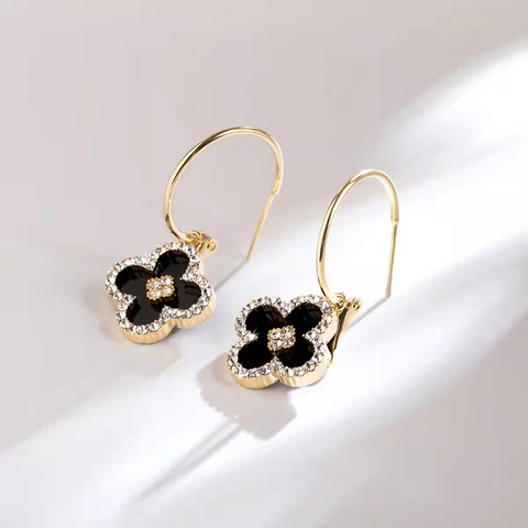 ファッションゴールドクレイクリスタルダイヤモンドメタルイヤリングデザイナー女性クローバーイヤリング