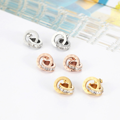 Orecchini placcati oro 18 carati in acciaio inossidabile con zirconi rotondi romani semplici e popolari di moda