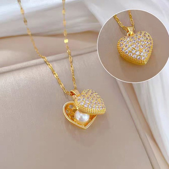 Ciondoli eleganti in acciaio inox sensazione Premium con collana pendente a cuore di perle di Zirconia