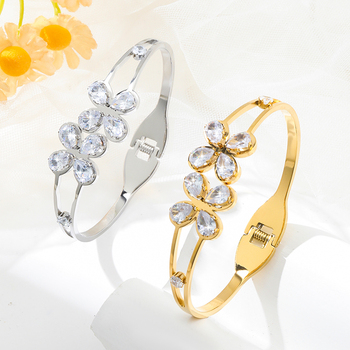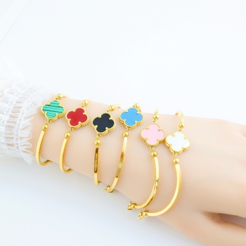 สร้อยข้อมือแฟชั่นอเนกประสงค์ของผู้หญิงคุณภาพสูงกันน้ำและกันเหงื่อสแตนเลสสตีลสี่ใบโคลเวอร์