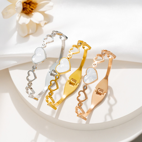 แฟชั่นสไตล์หอมหอมขนาดเล็กที่เรียบง่ายร้อยจับคู่สแตนเลสสร้อยข้อมือหัวใจพีชผู้หญิง