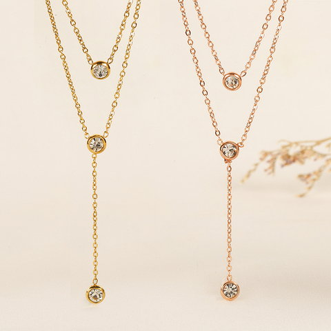 Thép Không Gỉ Không Phai Rose Gold Plated 18K Vàng Thời Trang Cá Tính Zirconia Hai Lớp Thép Không Gỉ Vòng Cổ