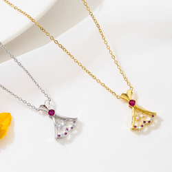 Thời trang và linh hoạt đi lại vòng cổ với Rose Red Zirconia Mặt dây chuyền và chuỗi Thép không gỉ