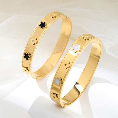 Chất Lượng Cao Không Thấm Nước Và Sweatproof Men Thủ Công Thép Không Gỉ Mạ 18K Vàng Bốn Lá Clover Vòng Đeo Tay